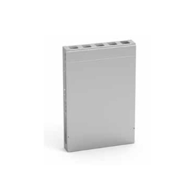 Muro técnico con revestimiento frontal liso fabricado en acero inoxidable AISI-304 18/10.